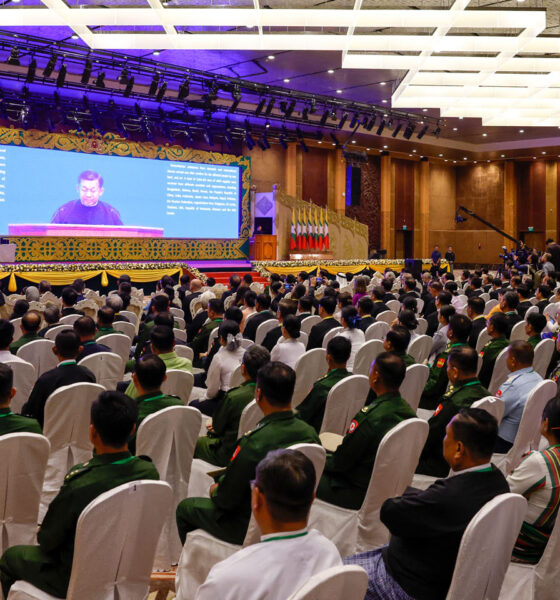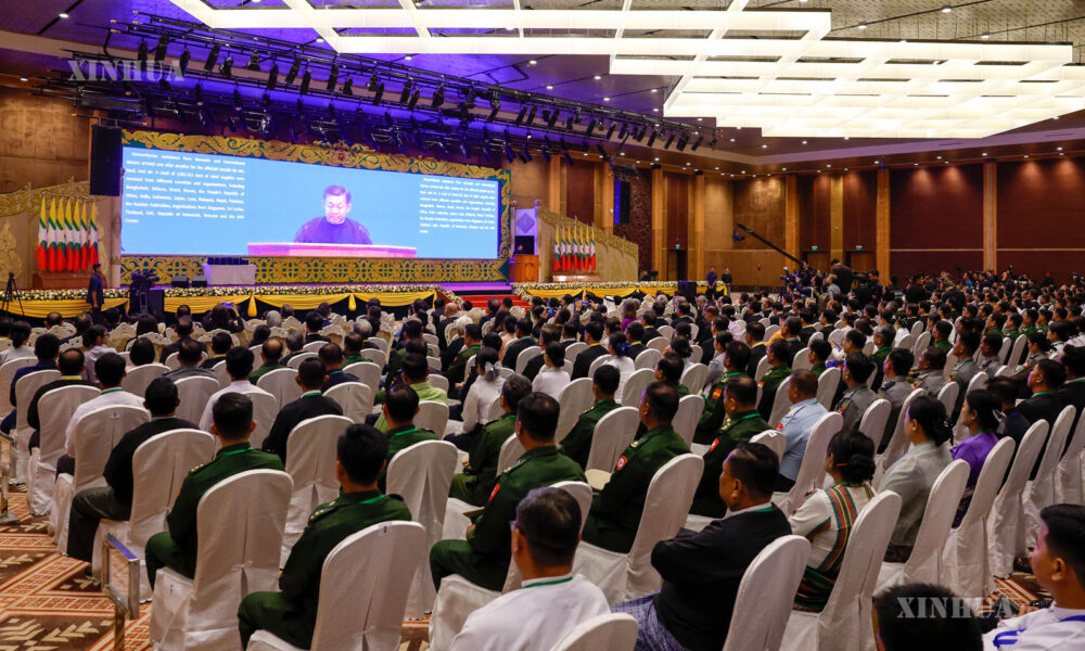 ရန်ကုန်၊ မတ် ၂၈ ရက် (ဆင်ဟွာ) မန္တလေးငလျင်ကြီး လှုပ်ခတ်မှု (၁)နှစ်ပြည့် အခမ်းအနားကို မတ် ၂၈ ရက်က မြန်မာနိုင်ငံ နေပြည်တော်ရှိ MICC-1 ၌ကျင်းပခဲ့သည်။ (Xinhua)